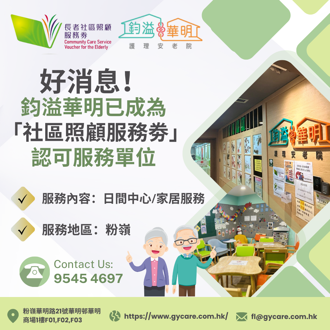 集團旗下3間「鈞溢幫」於2020年9月正式成為社會由福利署「長者社區照顧服務券」認可服務單位,提供長者家居到戶照顧護理服務。
